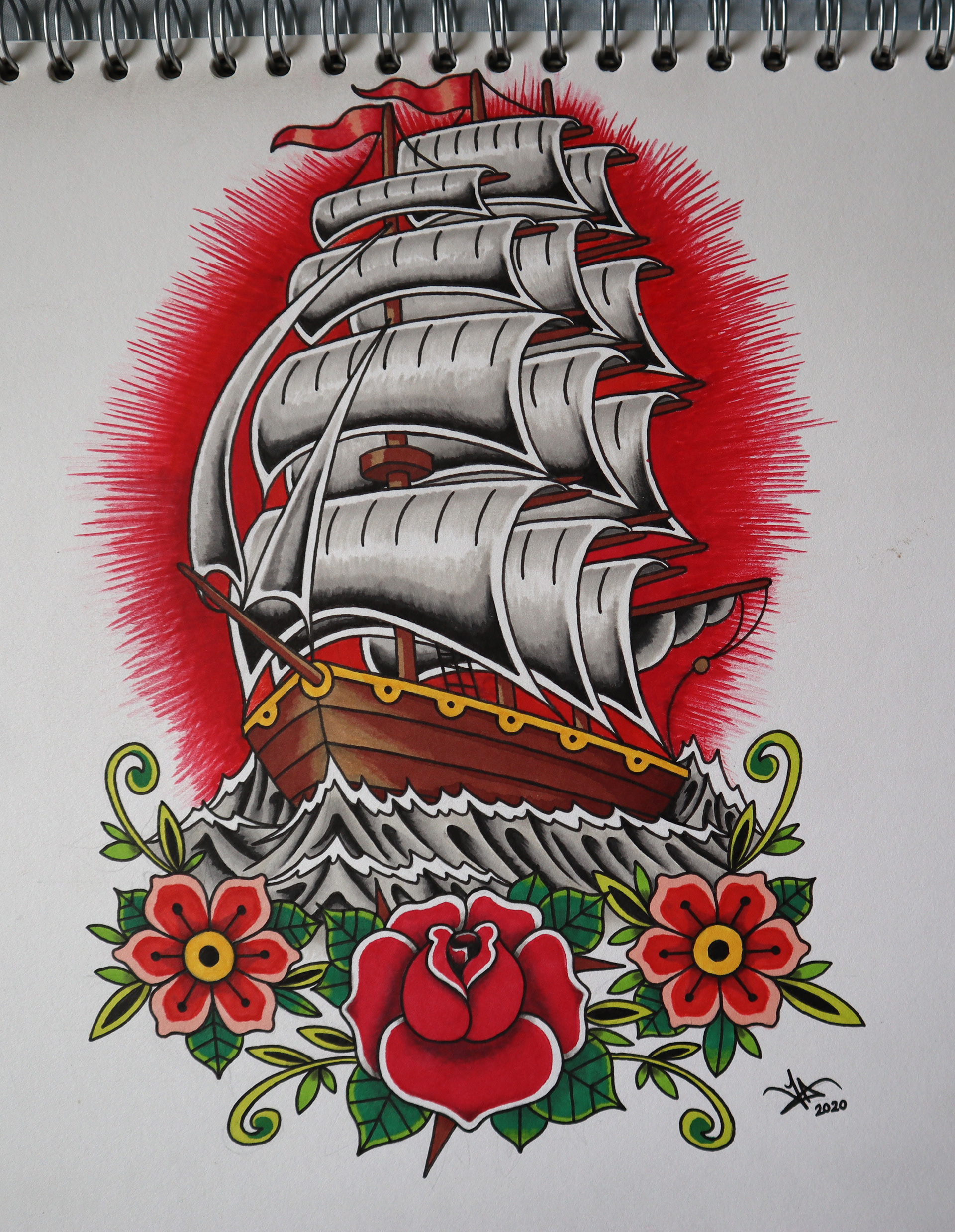 Traditional ship tattoo finished